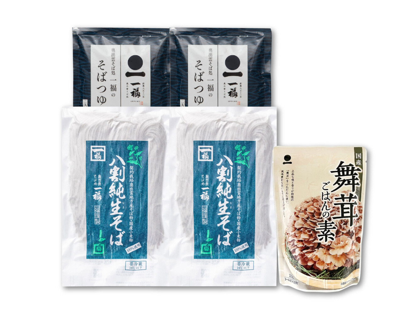奥出雲八割本生そば240g×2(4人前)/そばつゆ150g×2(4人前)/舞茸ごはんの素 200g×1(米3合分)