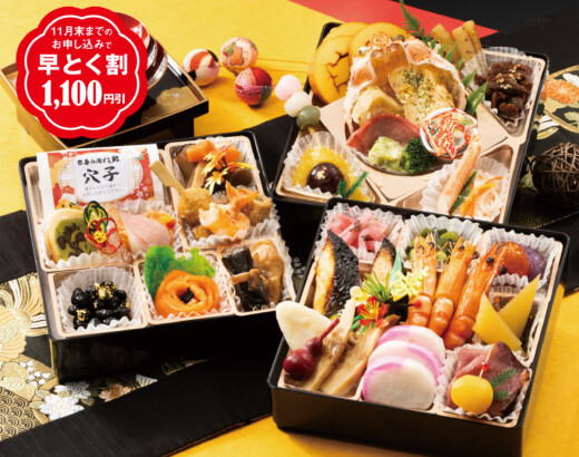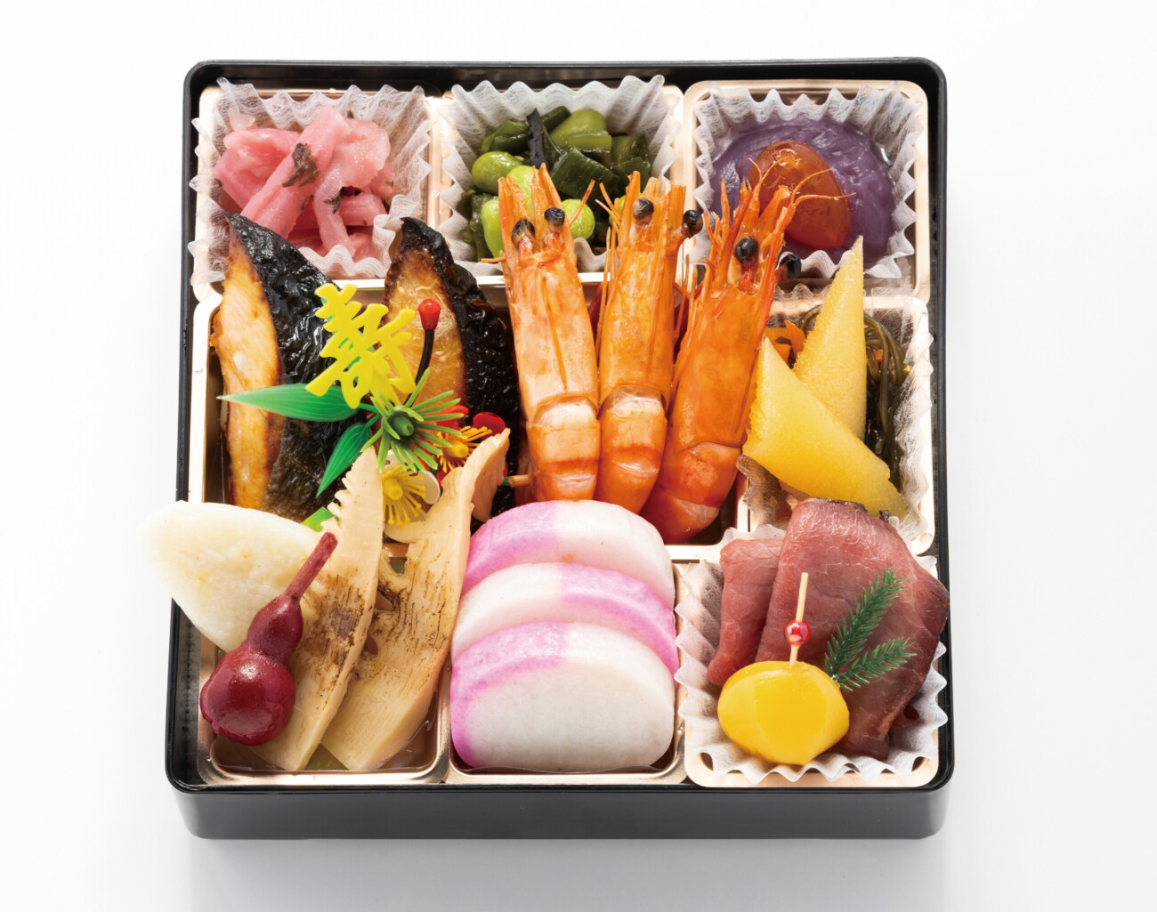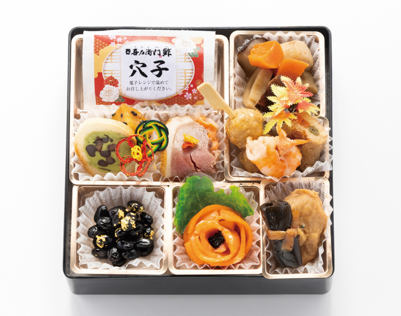 和の伝統的な味わいに洋のエッセンスを加えた、毎年人気のおせち料理です。2〜3人前のサイズで、家族みんなで楽しめる内容となっています。吾左衛門鮓穴子も入っており、大惣グループならではのこだわりが詰まっています。