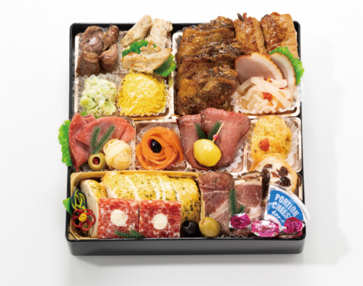 和を中心とした重、洋を中心とした重、そして高級食材が入った重が揃い、家族揃ってのお正月の宴に華を添えます。