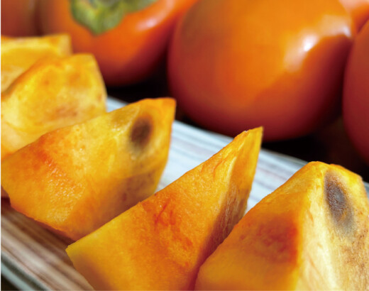 富有柿は糖度が高いことで「甘柿の王様」と呼ばれる品種です。大山育ちの富有柿は、くろぼく土の恵みで甘いと評判です。はじめはサクッとした食感で、熟してくると柔らかくトロッとした食感に変化します。お好きな熟し加減でお楽しみください。