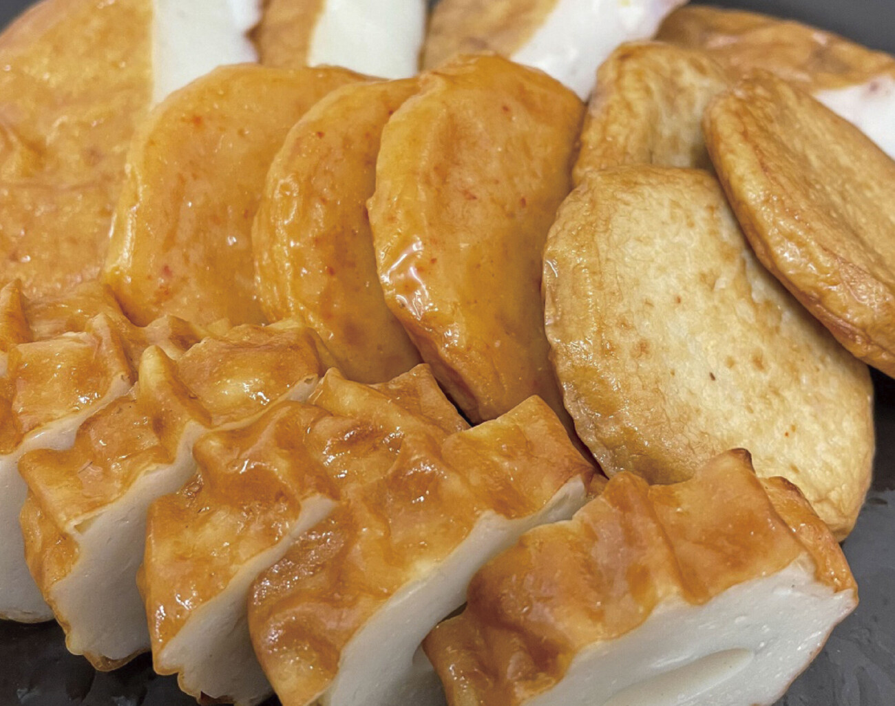 【赤てん】唐辛子とパプリカの入ったピリッと辛い天ぷらです。ビールのおつまみだけでなく、おやつやお弁当にも最適です。